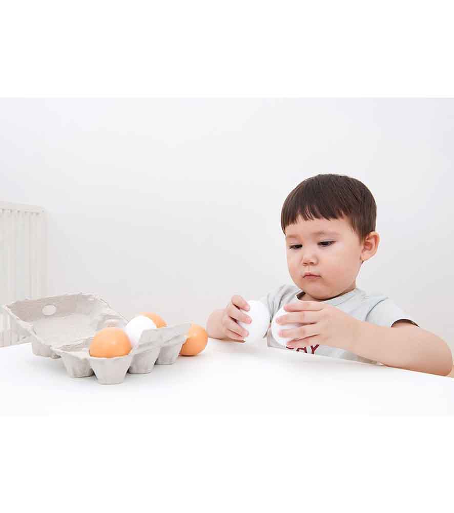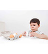 - 6 ouă mari de lemn (3 maro si 3 albe);