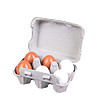 Un set de 6 ouă de găină într-o cutie, ca tocmai achizitionată din magazin.