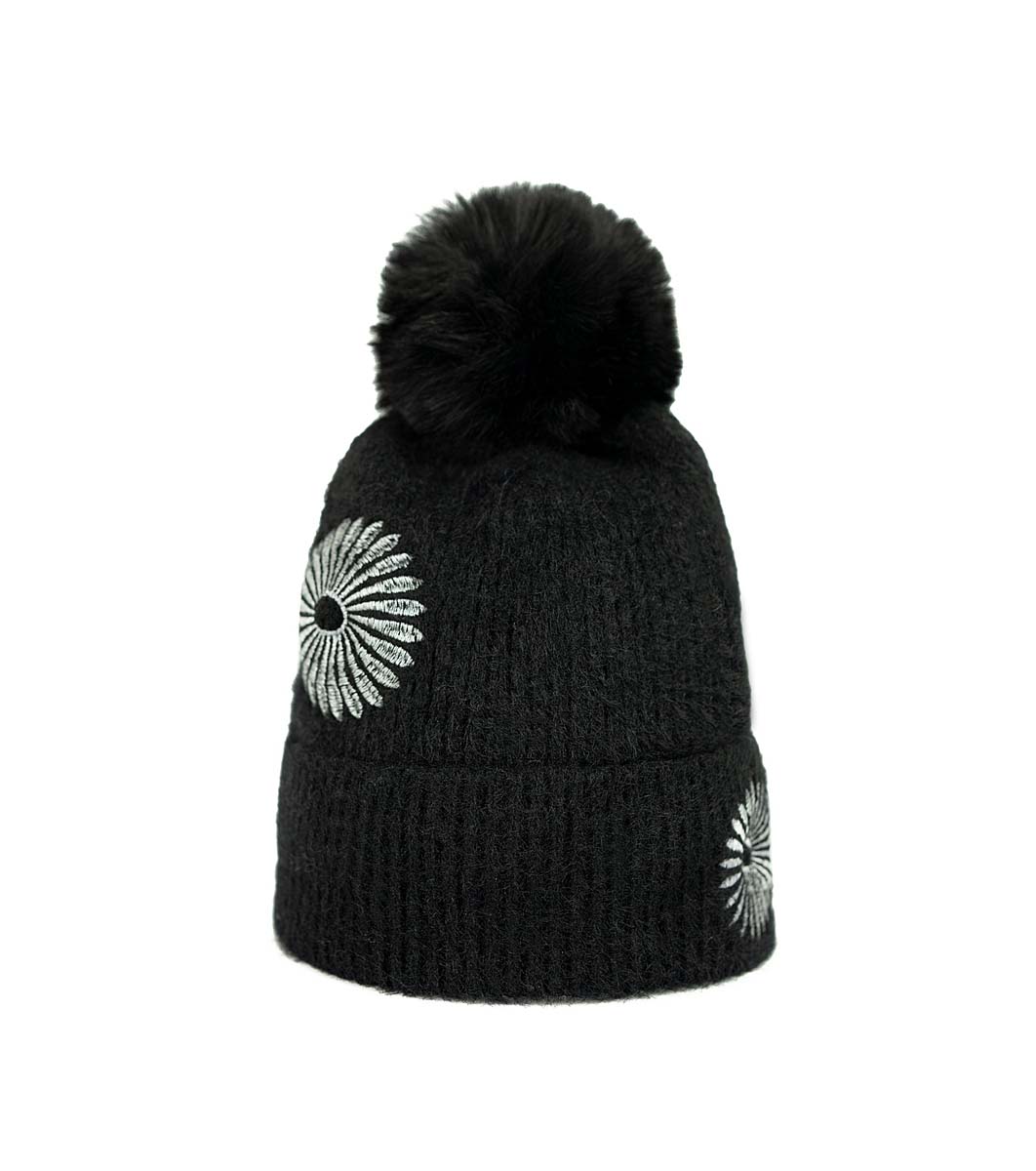 ART of POLO Palarie de dama neagra cu flori gri Tesatura moale, placuta la atingere