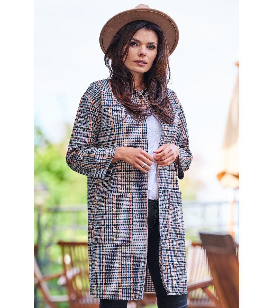 Awama Palton Jasmine Navy Check Decolteu rotund