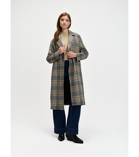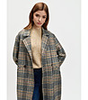 Palton gri în carouri cu revere pentru femei