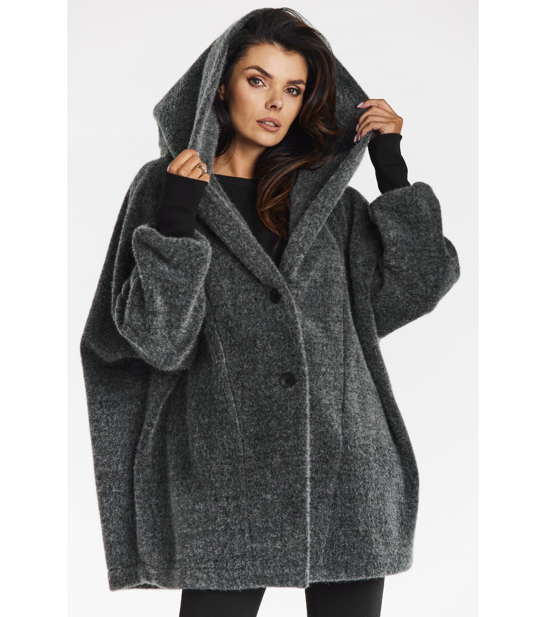 Awama Palton gri supradimensionat pentru femei Palton cu glugă