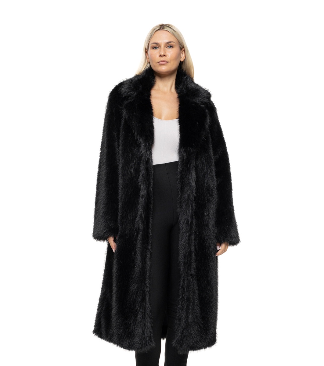 Biston Palton lung negru din blană artificială Dili Palton lung din blană artificială cu blană