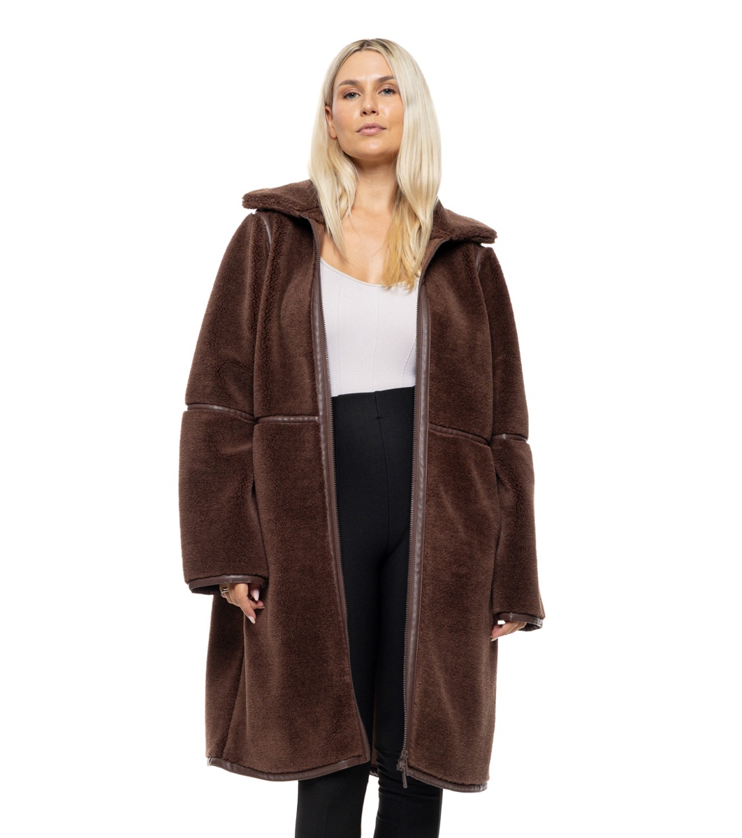 Splendid Palton maro de damă Alita Palton lung cu croială dreaptă și lejeră