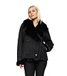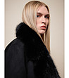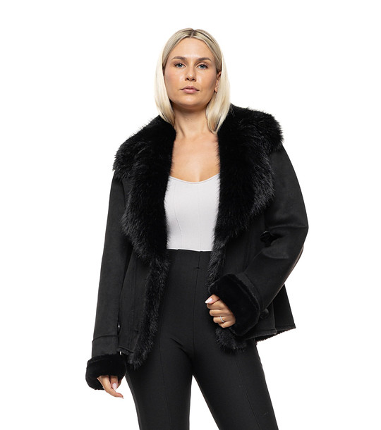 Splendid Palton negru de damă cu guler cu puf Jaya Palton scurt cu croială dreaptă