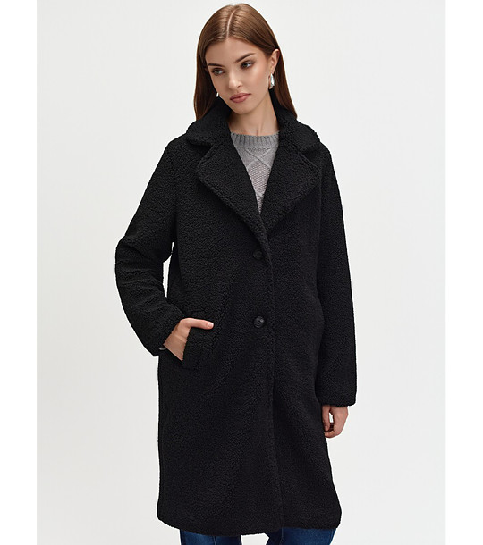Palton negru de damă din burete bouclé cu rever
