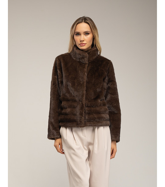 Palton scurt pufos maro pentru femei