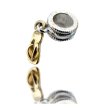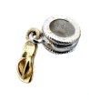 Un mic medalion decorativ în formă de papuc. Designul include un element în formă de inel pentru atașare ușoară la o brățară sau un lanț.