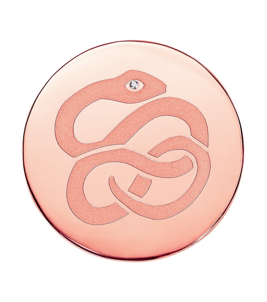 Pandant rotund cu motiv gravat cu șarpe pe față.