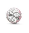 O mărgele delicată cu detalii florale deosebite. Elementul decorativ este realizat cu atenție la detalii, combinând diferite motive care îi conferă un aspect unic.