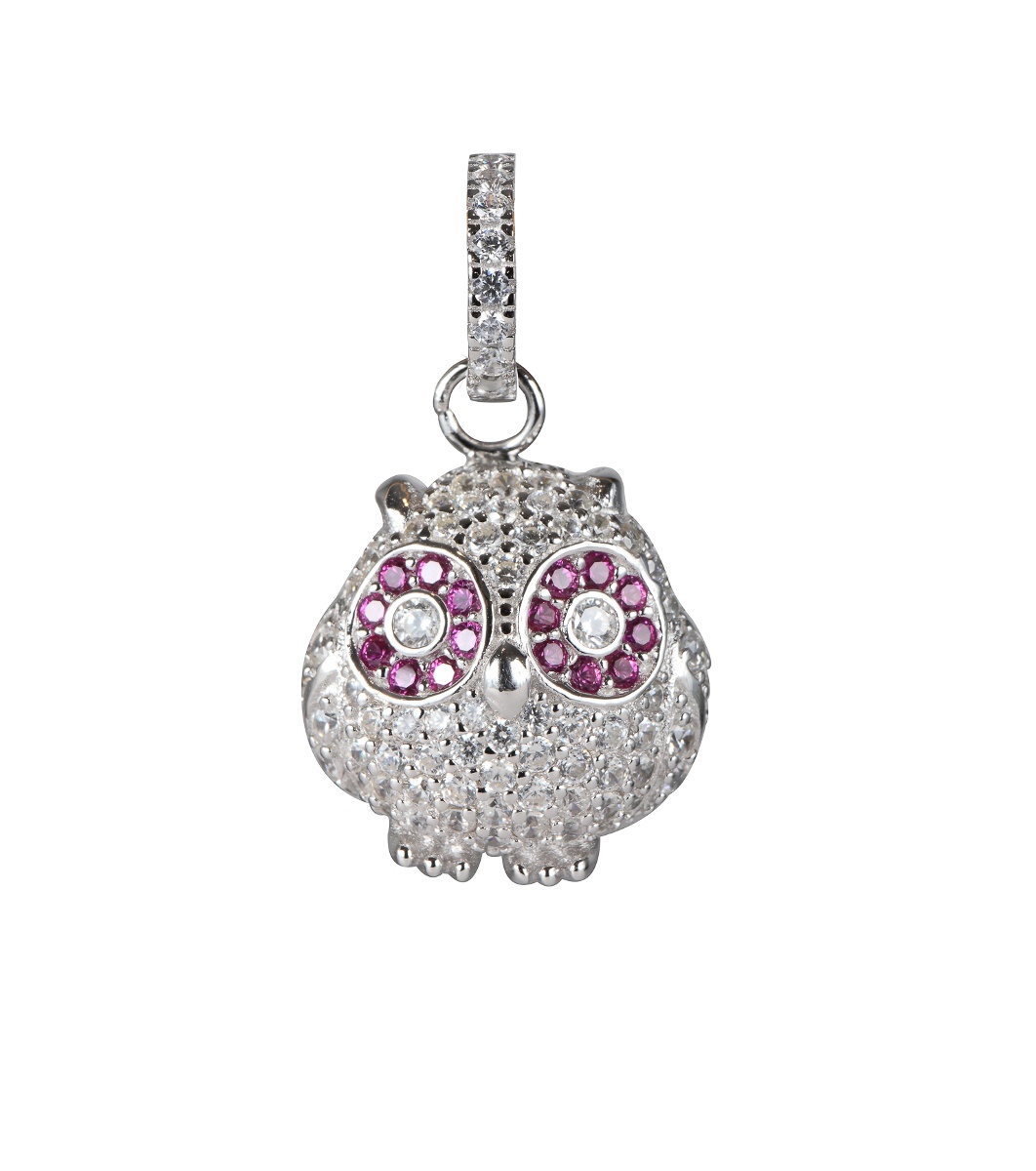 Pandant rafinat în formă de bufniță, decorat cu numeroase elemente strălucitoare. Ochii sunt evidențiați cu detalii rotunde, oferind strălucire suplimentară. Potrivit pentru a fi purtat cu diverse tipuri de coliere.