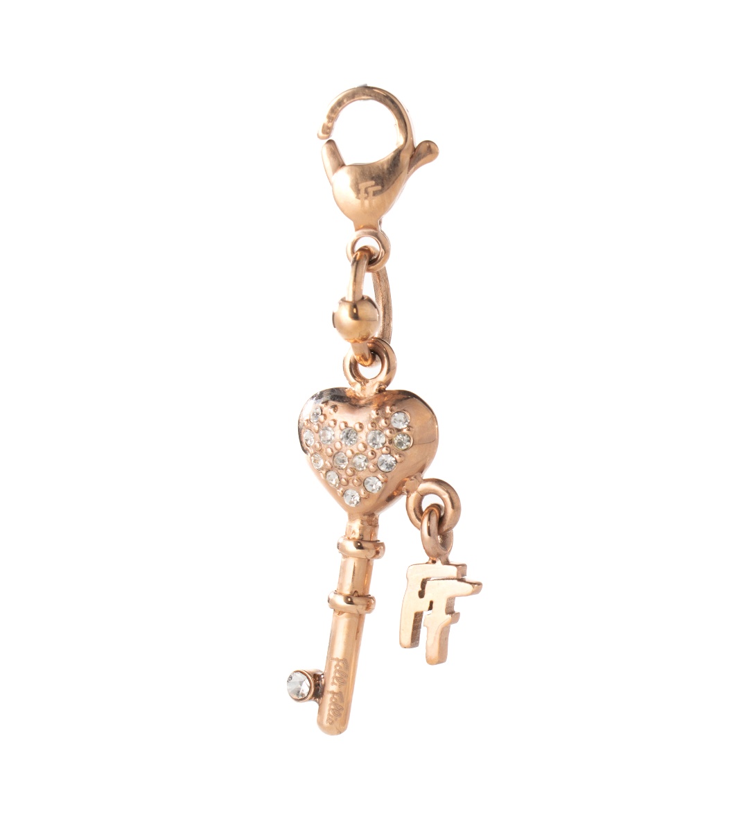 Închizătoarea are forma unei carabiniere, care permite atașarea ușoară la un lanț sau o brățară.