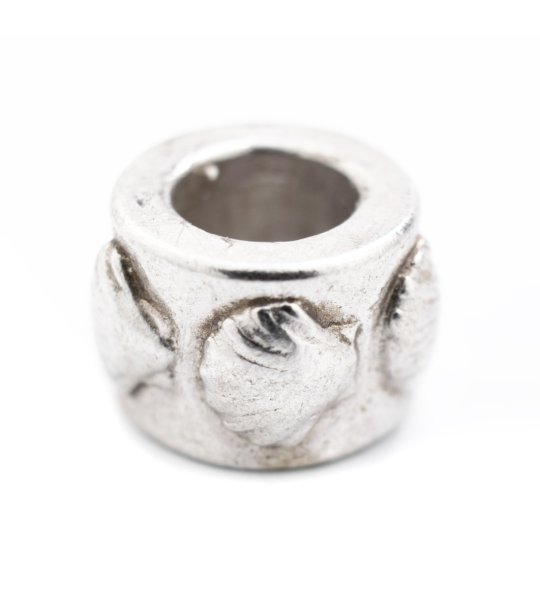 Pânzit rotund cu elemente decorative în relief pe suprafață. Potrivit pentru diverse tipuri de brățări și coliere.