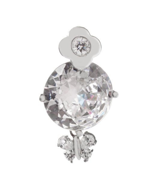 Pandant elegant cu un design rafinat, care include o floare și un fluture. Partea superioară are forma unei flori cu un cerc central, iar partea inferioară se termină cu un fluture detaliat. Potrivit pentru diverse ocazii.