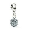 Pandant cu formă rotundă și pietre încrustate. Închizătoarea este de tip carabină pentru o prindere ușoară.