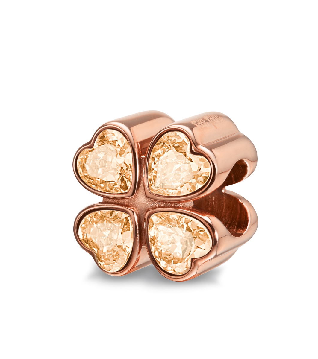 Un pandantiv cu patru elemente în formă de inimă aranjate în formă de cruce. Fiecare element are o suprafață lucioasă care îi conferă un aspect elegant. Găurile de pe laterale permit înșirarea ușoară a brățării.