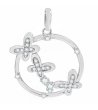 Pandant elegant cu trei elemente decorative în formă de cruce. Designul circular este decorat cu accente strălucitoare.