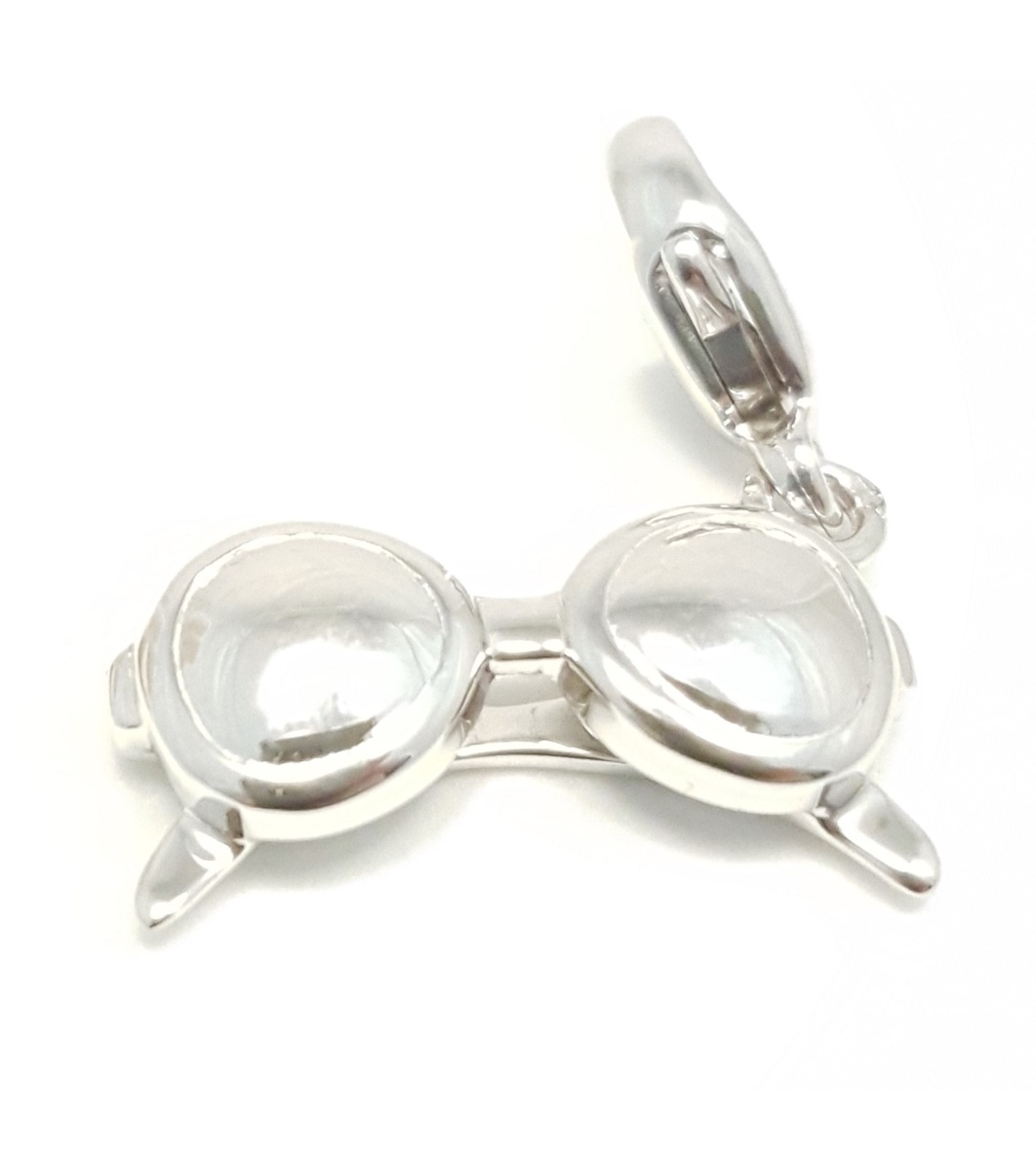 Părel elegant în formă de ochelari, potrivit pentru o brățară. Lucrarea detaliată creează un accent stilat.