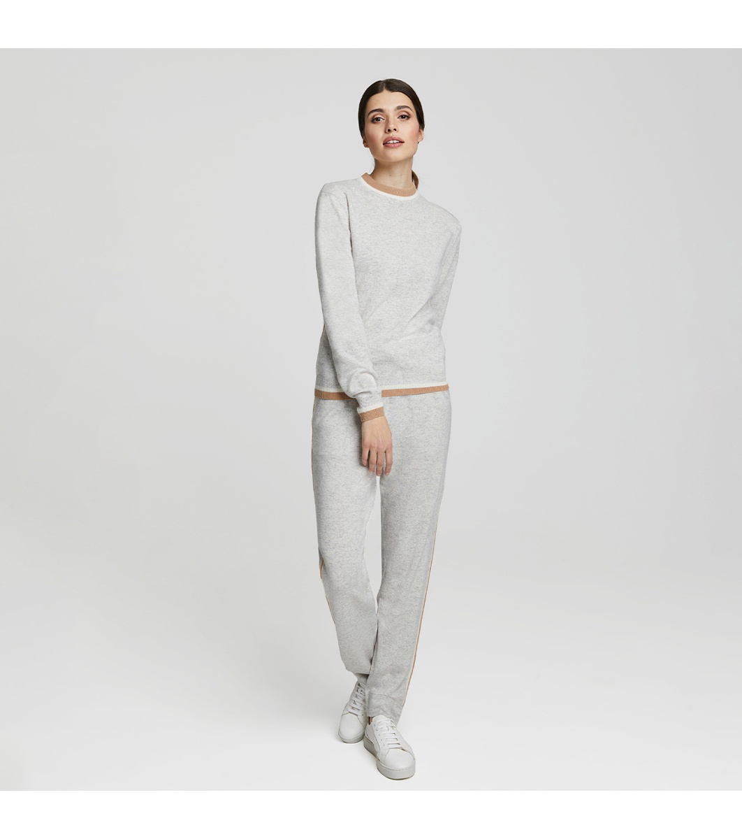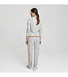 Pantaloni sport cu talie medie. Concepuți cu o siluetă clasică și conici pentru o croială flatantă. Prevăzuți cu buzunare laterale pentru confort sporit și o bandă elastică cu șnur și dungi contrastante. Manșete solide tricotate și detalii tricotate cu intarsii nervurate pe laterale pentru un efect elegant și subțire.