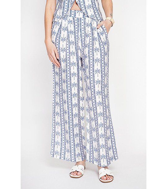 Pantaloni albi cu imprimeu din in
