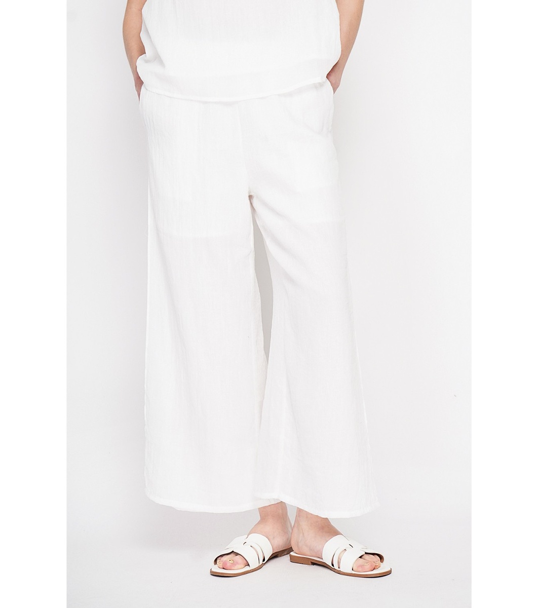 Le jardin du Lin Pantaloni albi cu pliu Talie înaltă.
