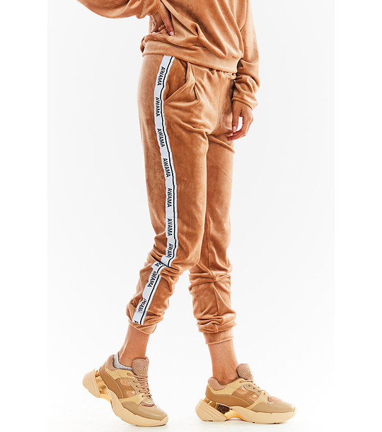 Awama Pantaloni bej cu aspect de catifea Fifi