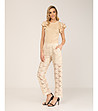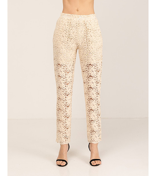 Pantaloni bej cu croi larg din dantelă