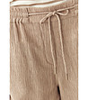 Pantaloni până la gleznă, cu croială dreaptă și lată. Talie elastică cu legătură în față. Buzunare laterale cu fante și buzunare decorative la spate. Textură de material în relief.