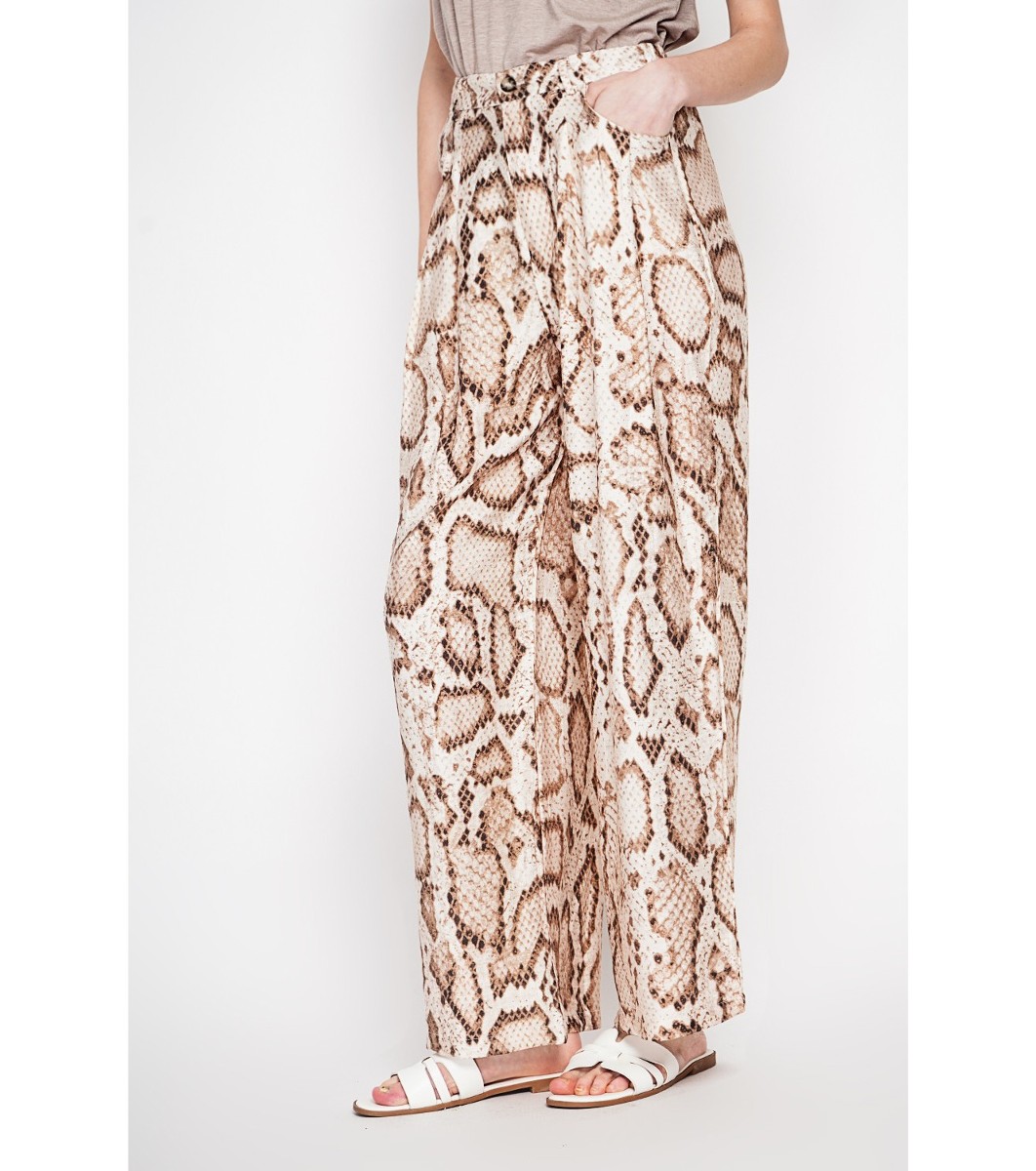 William de Faye Pantaloni bej cu imprimeu animal Pantaloni de damă cu croială dreaptă și largă.