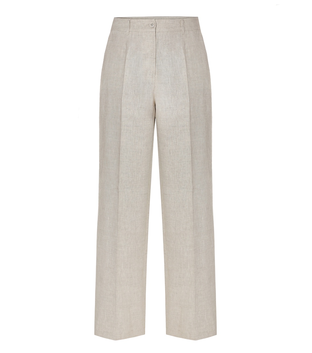 Pantaloni bej din in, cu talie dreaptă