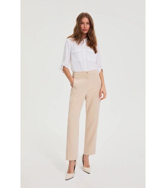 Moodo Pantaloni bej pentru femei, cu croială dreaptă Talie înaltă