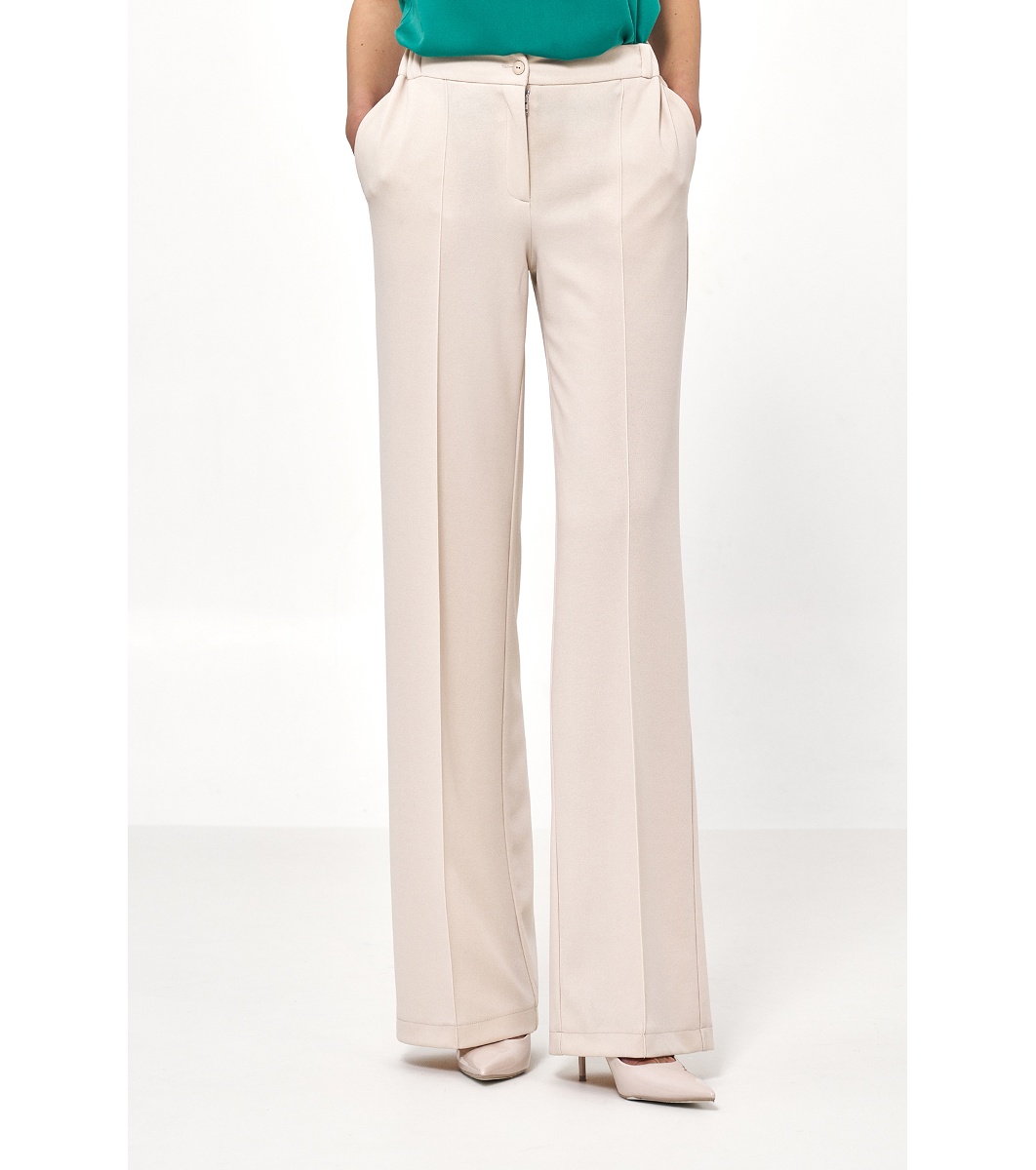 Nife Pantaloni bej pentru femei, cu croială largă Pantaloni lungi cu croială dreaptă și largă.