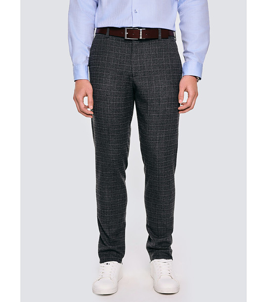 Pantaloni bărbătești gri închis în carouri JORDINI