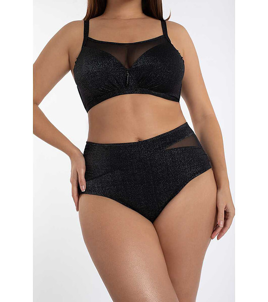 Marc & André Pantaloni de costum de baie Moonlight Fuziunea intrigantă a Lurex-ului strălucitor și drapat® și plasa senzuală creează o declarație de modă îndrăzneață care subliniază feminitatea. Seria MOONLIGHT este confecționată din țesătură ușoară și extrem de moale la atingere.