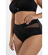 Partea de jos a costumului de baie cu talie înaltă, cu panouri diagonale din plasă și detalii adunate