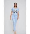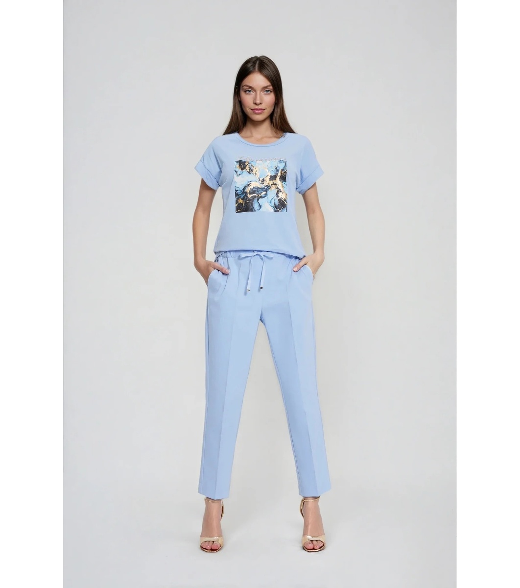 Moodo Pantaloni de damă albastru deschis cu șnur Siluetă dreaptă cu conținut ridicat de bumbac.