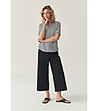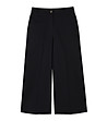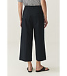 Pantaloni de damă cu talie dreaptă și talie largă până la gleznă. Închidere cu fermoar și nasturi în față. Curea cu găici pentru curea. Buzunare laterale față și buzunare decorative la spate. Margine frontală netedă, cu șnururi pe lungimea picioarelor.