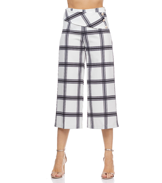 Pantaloni de damă albi 7/8 în carouri