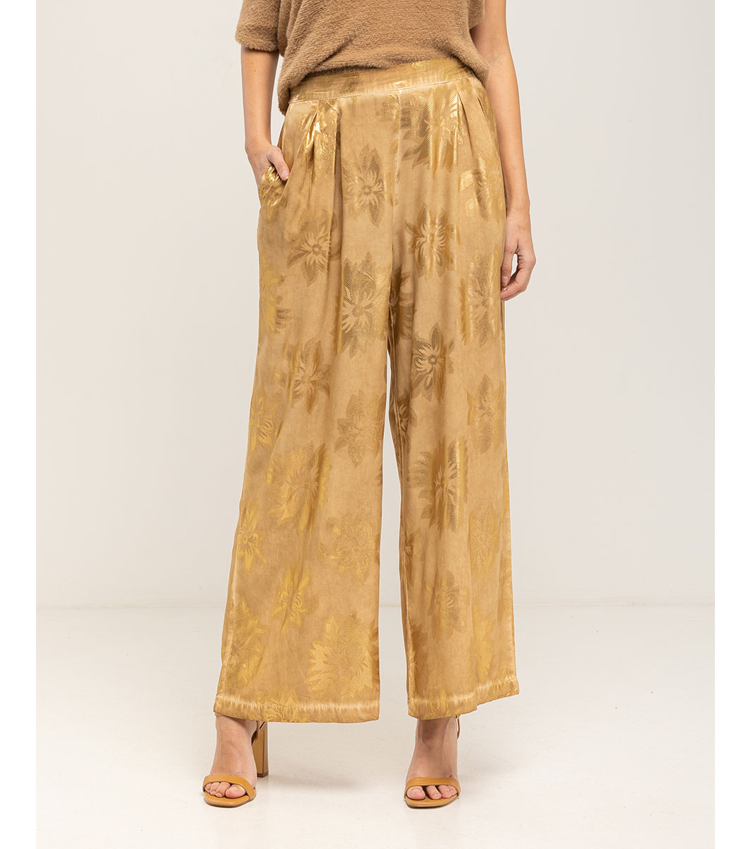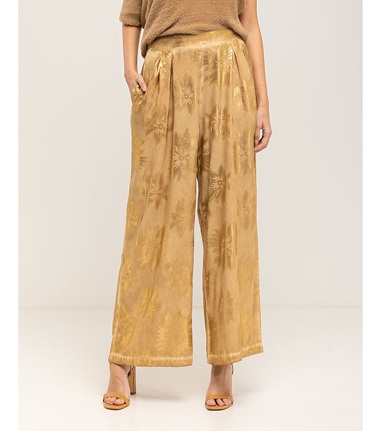 Tantra Pantaloni de damă aurii cu imprimeu floral Pantaloni largi
