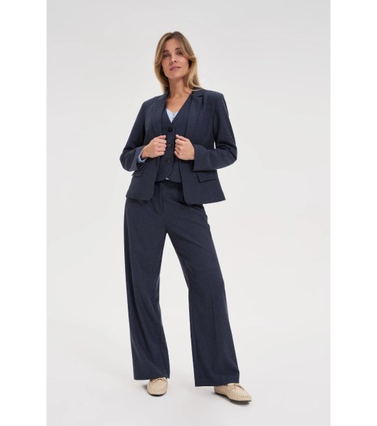 Moodo Pantaloni de damă bleumarin cu dungi Talie înaltă