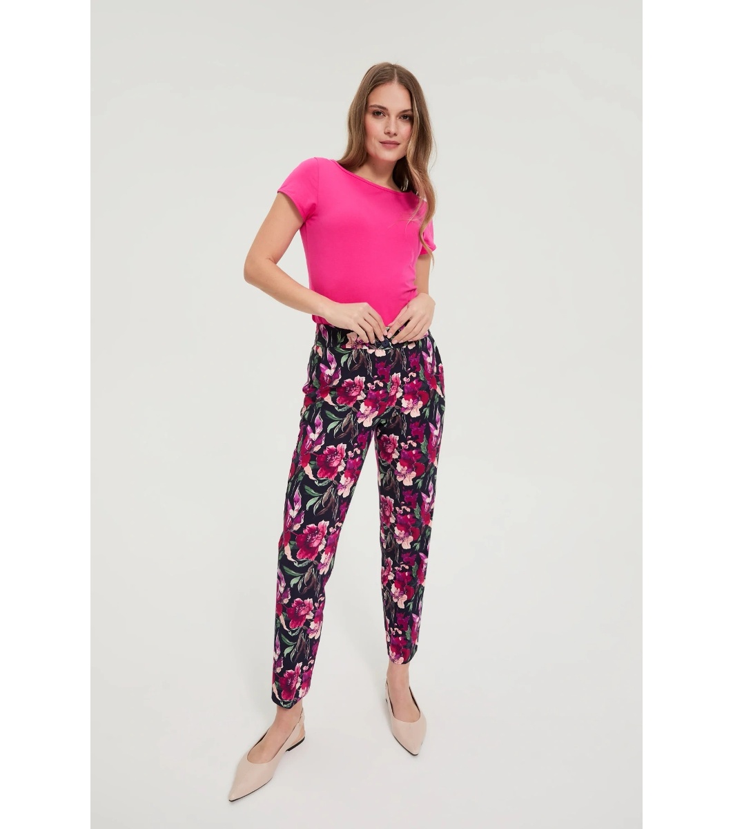 Pantaloni de damă bleumarin cu imprimeu floral
