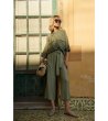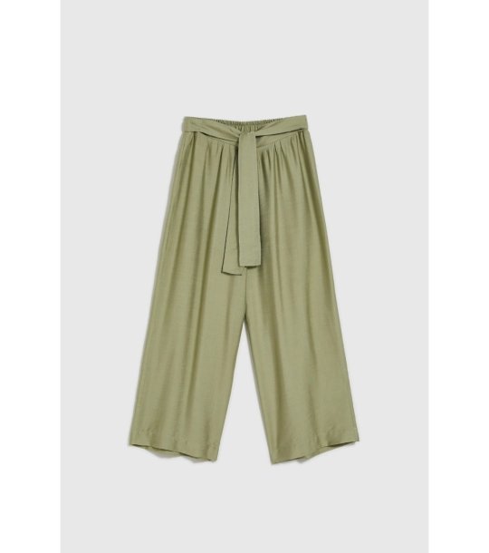 Pantaloni largi de damă, cu lungime până la gleznă. Modelul are o bandă elastică în talie și o curea decorativă pentru legare. Pantalonii au o croială dreaptă, oferind confort și libertate de mișcare.