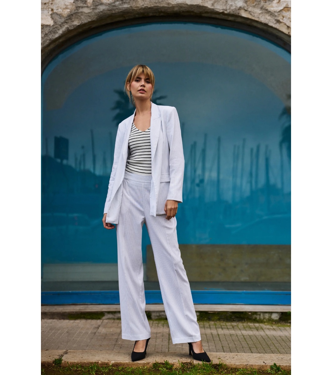 Moodo Pantaloni de damă cu dungi albe Talie înaltă cu elastic pe lateral