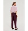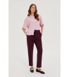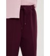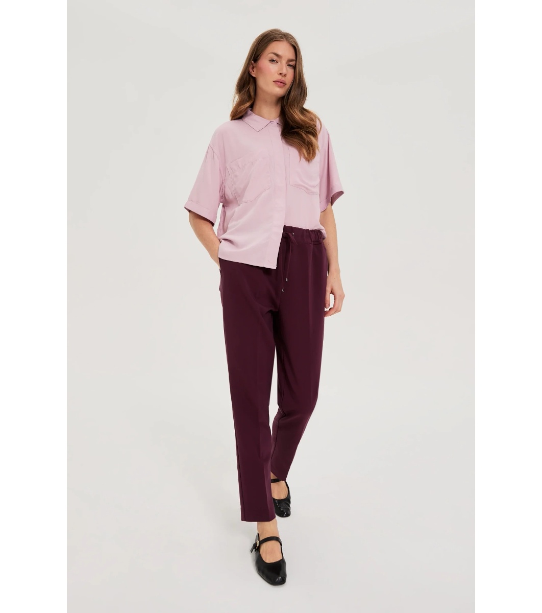 Pantaloni de damă cu talie elastică și șnururi reglabile. Designul include picioare drepte și buzunare laterale. Pantalonii sunt potriviți pentru purtarea zilnică și oferă confort și stil.