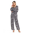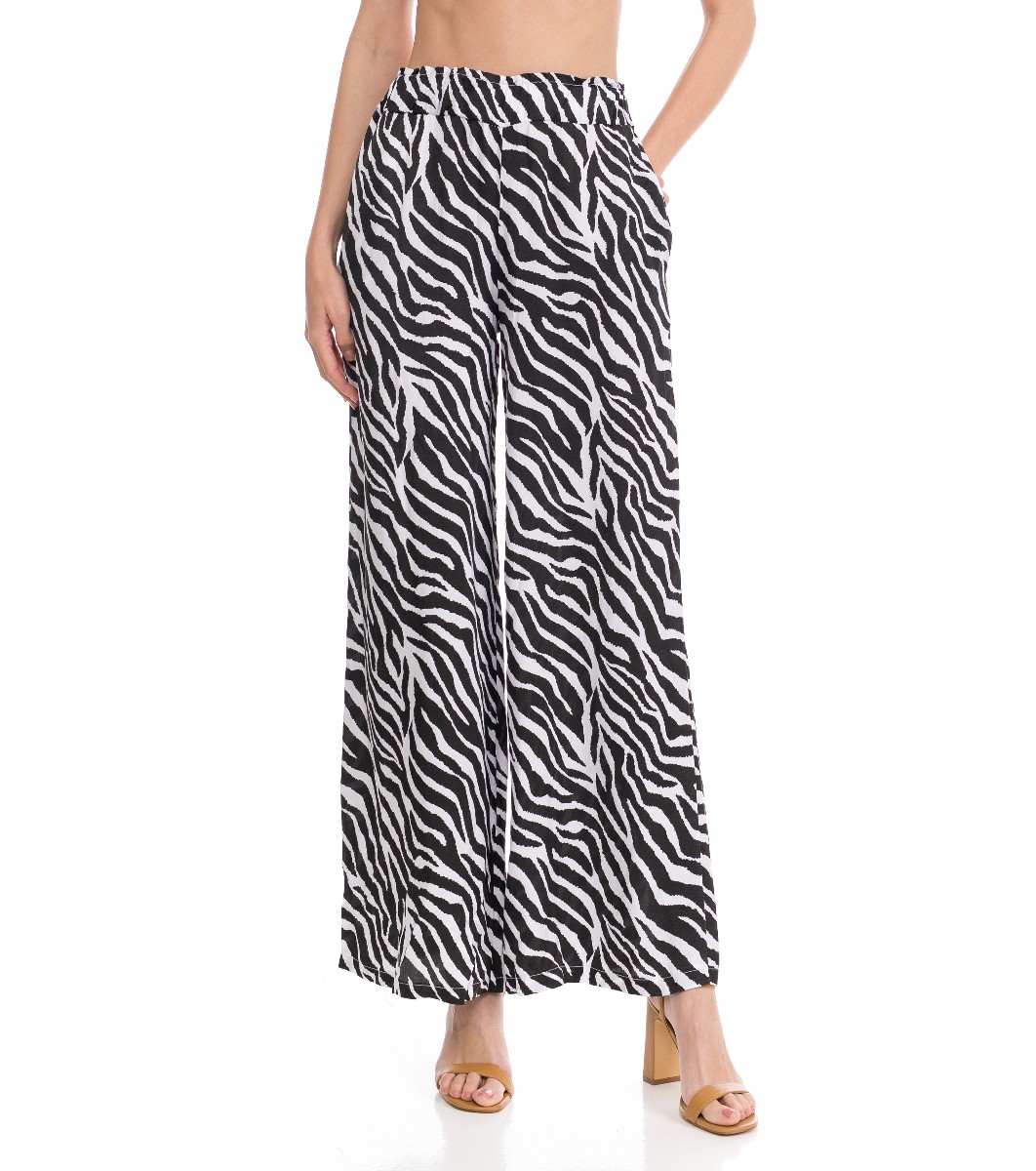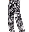 Pantaloni de damă din bumbac, alb-negru, cu imprimeu zebră