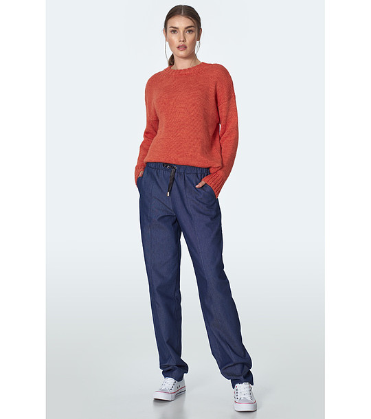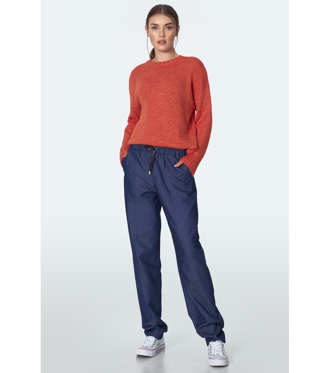 Nife Pantaloni de damă din denim, din bumbac albastru Talie elastică cu șnur