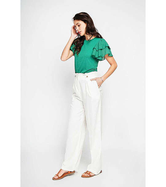 Pantaloni de damă din in și bumbac în alb Lamilia
