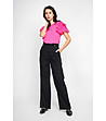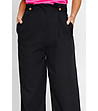 Assuili Pantaloni de damă din in și bumbac negru Lamilia Talie înaltă cu bretele cu nasturi