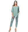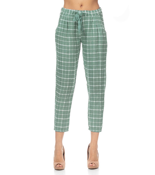 Tantra Pantaloni de damă în carouri verzi, cu material din in Talie înaltă cu șnur