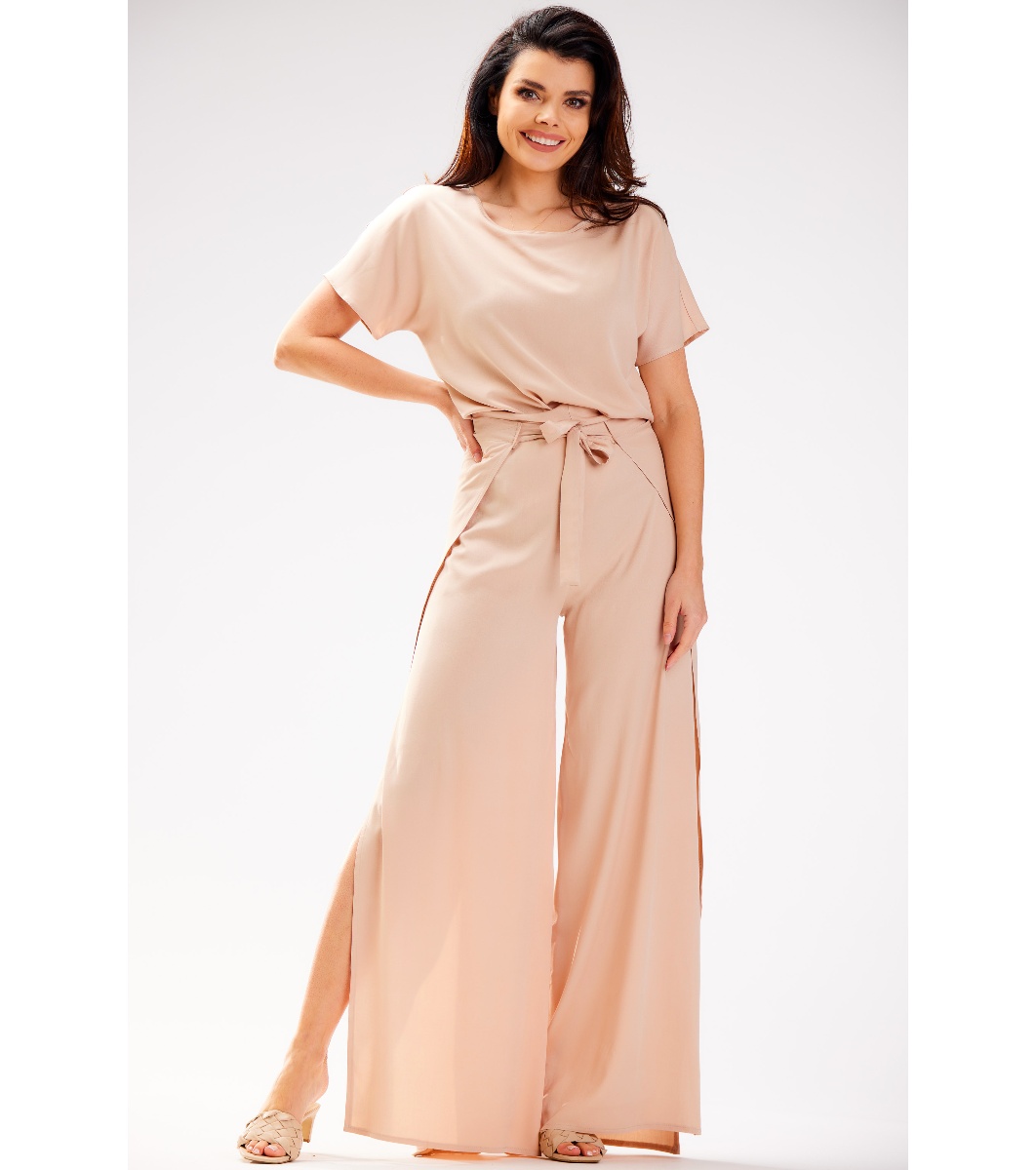Awama Pantaloni de damă în nuanță bej Talie înaltă